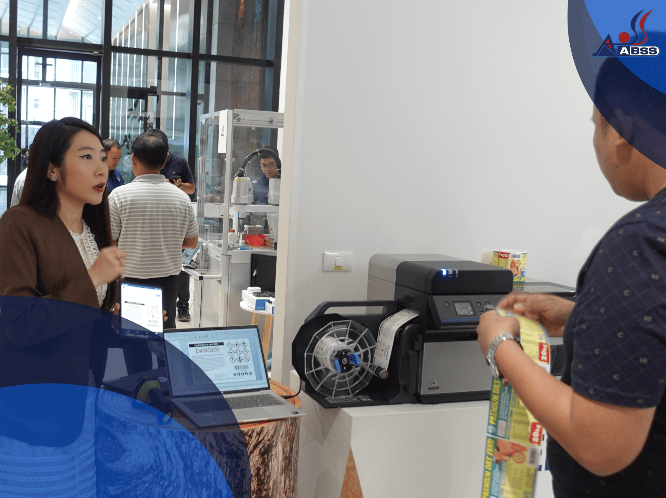 โดยภายในงาน ABSS ได้นำโซลูชัน Scanner printing จาก Scanner แบรนด์ Zebra ร่วมกับ Software Bartender และ Printer&Arm Robot แบรนด์ EPSON