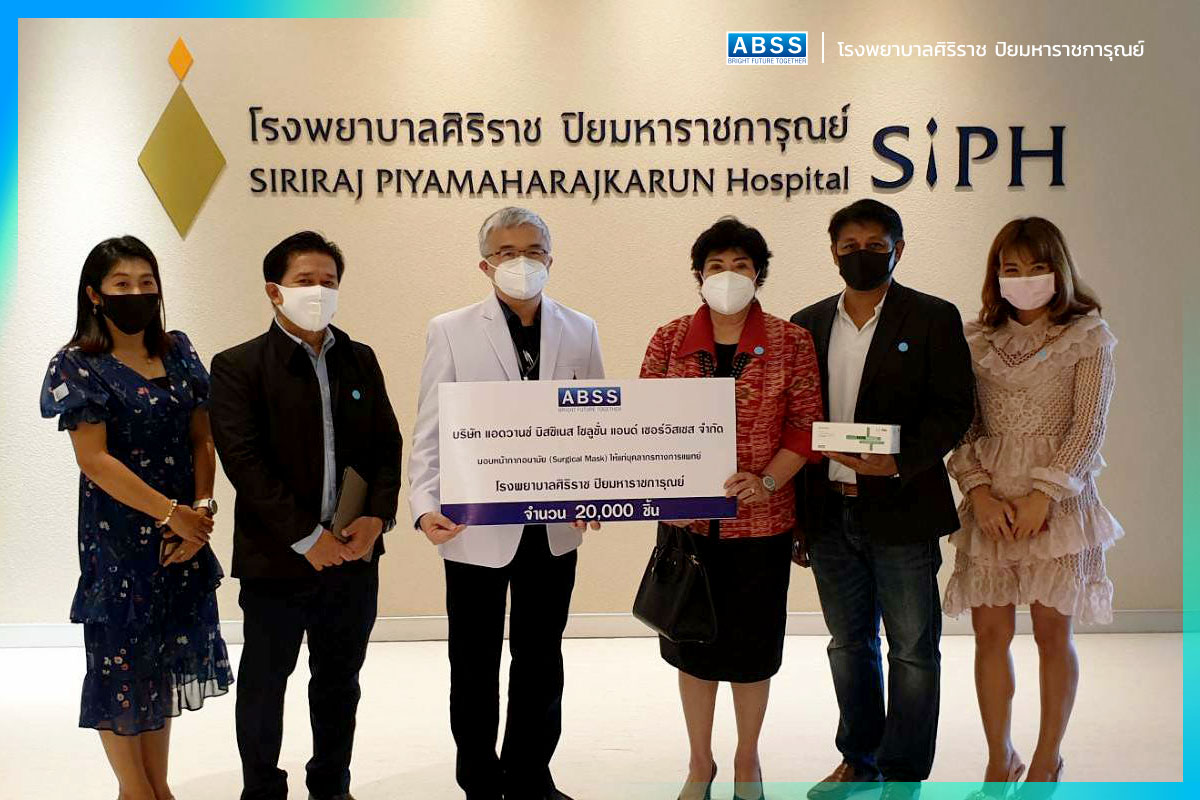 ABSS เดินหน้าร่วมส่งกำลังใจให้บุคลากรทางการแพทย์ ส่งมอบความห่วงใยในความปลอดภัยของบุคลากรทางการแพทย์ผู้ปฏิบัติหน้าที่อย่างเสียสละจากสถานการณ์การแพร่ระบาดของไวรัสโควิด-19 โดยจัดเตรียมการส่งมอบ ”หน้ากากอนามัย” (Surgical Mask) ให้แก่โรงพยาบาลต่างๆ จำนวน 50,000 ชิ้น เพื่อนำไปใช้ในการปฏิบัติหน้าที่ต่อสู้กับเชื้อไวรัส COVID-19 ต่อไป โดย ทีมคณะผู้บริหาร คุณอัญชลีพร อภิศิตสวัสดิ์ (CEO), คุณรณยศ เลี้ยงอำนวย (Deputy CEO),และ คุณมงคล ยศสุนทร (Chief Sales & Marketing Officer ) ได้มอบ หน้ากากอนามัยให้แก่ โรงพยาบาลศิริราช ปิยมหาราชการุณย์ จำนวน 20,000 ชิ้น